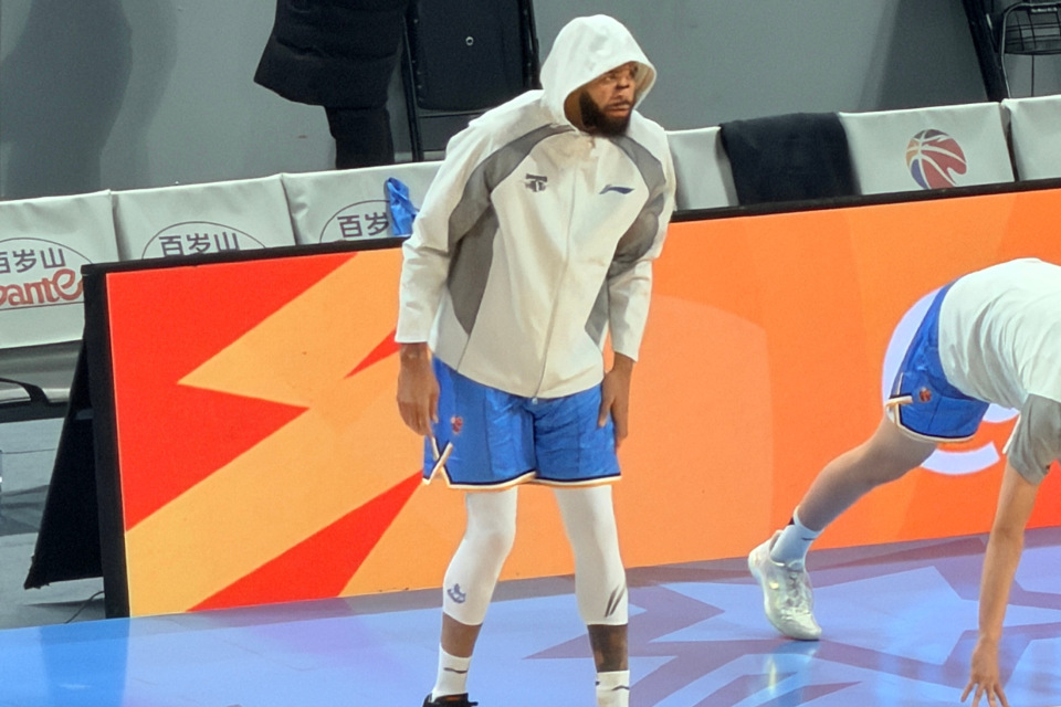 麦基赛前积极进行热身,为CBA首秀做准备